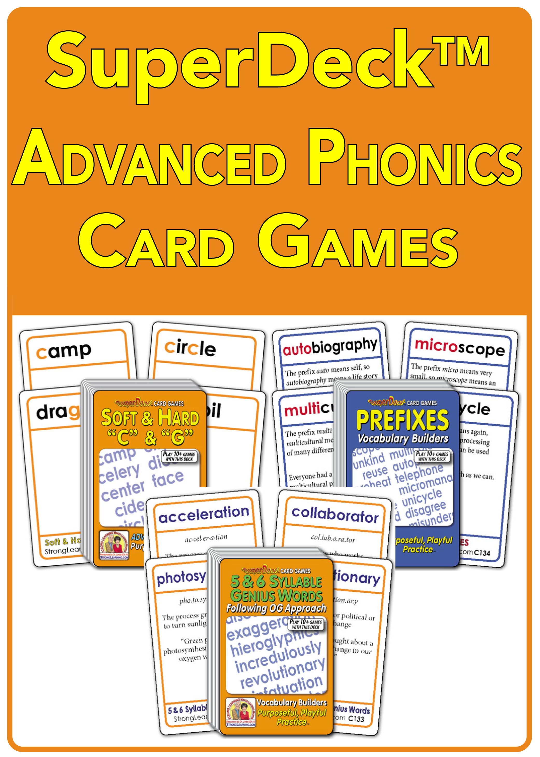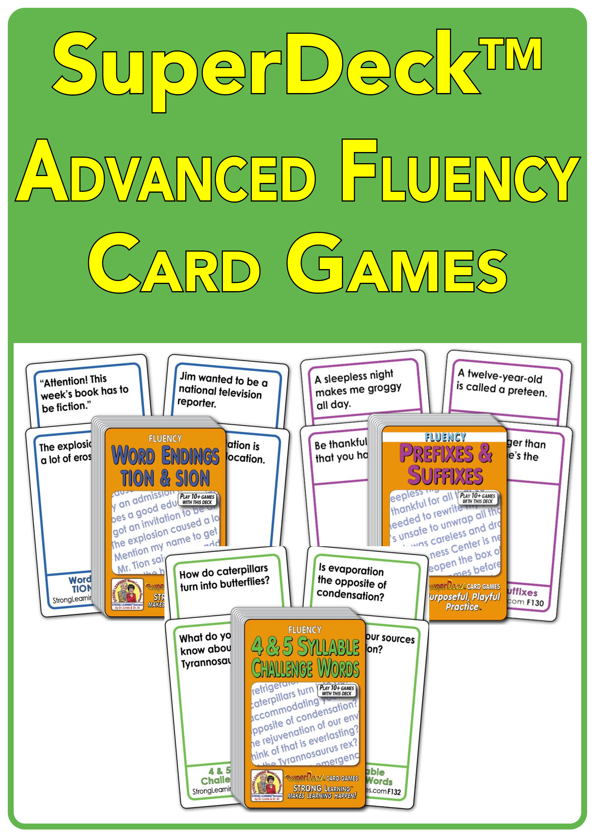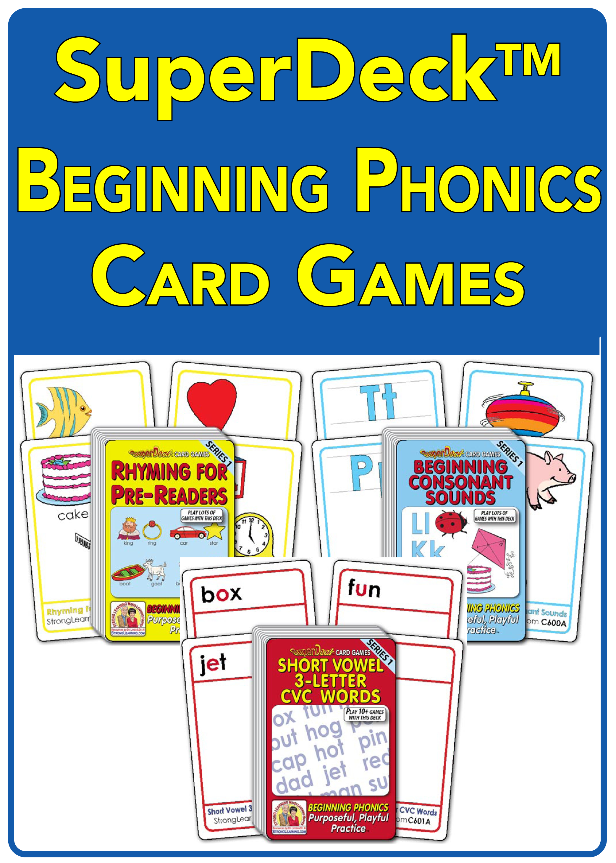SuperDeck card games facilitate the mastery of individual phonemes, and phonemic patterns, and improve fluency.