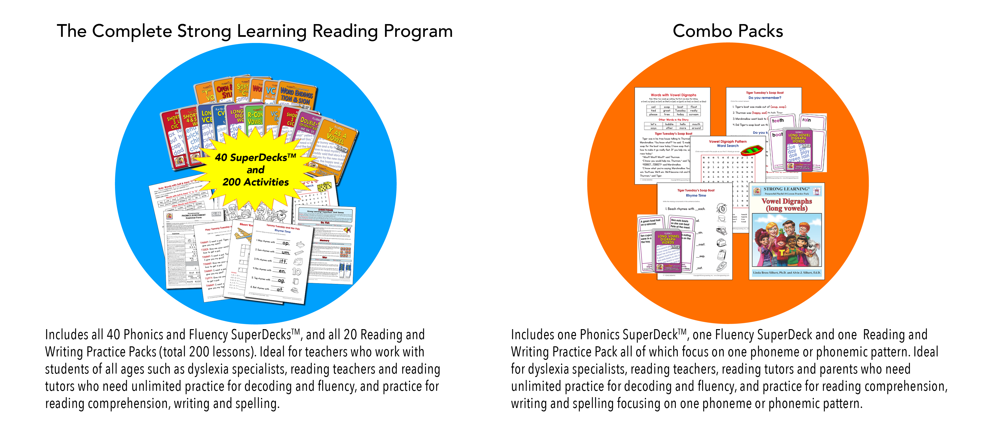 Program materials include SuperDeck cards as well as Reading & Writing Practice Packs which serve to help students apply each phoneme.