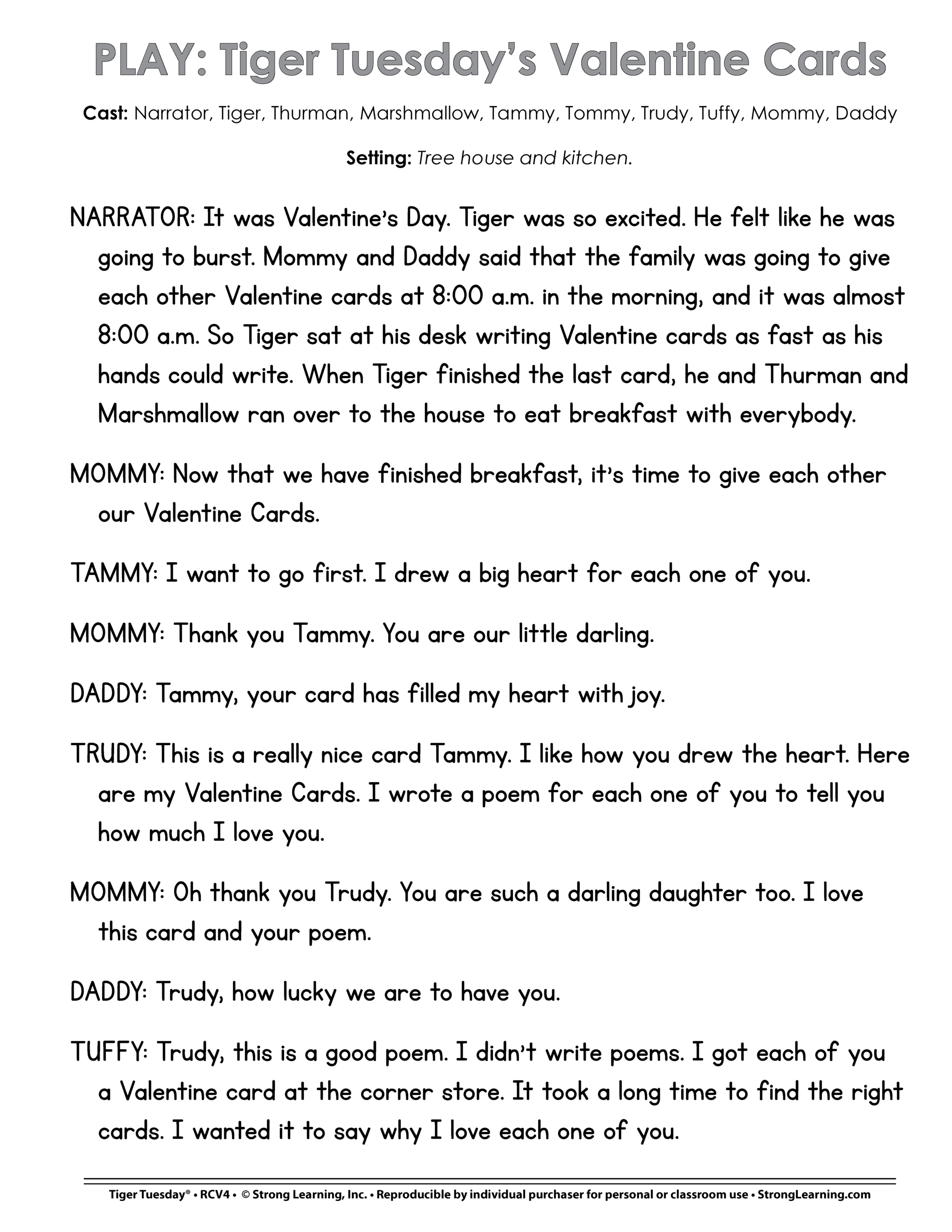 The content also promotes social-emotional learning through relatable characters children love: Tiger Tuesday, his parents, his four siblings, and his pets—dog Thurman and frog Marshmallow (who only Tiger understands). Includes paper cut-outs that can be used as play props.Tiger Tuesday’s Valentine Cards Script to practice decoding R-Controlled Vowels Grade 2 and Grade 3