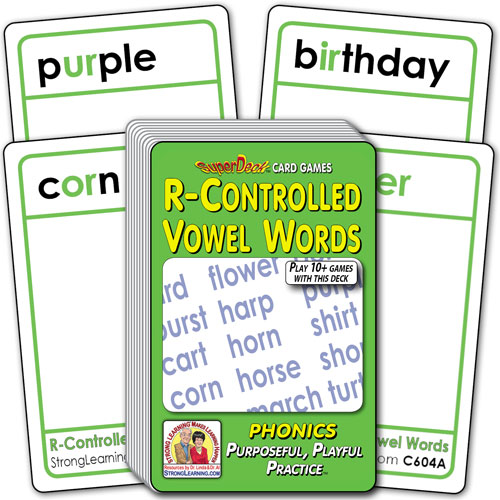 Players learn the R-Controlled Vowel Pattern rules while playing any of over 10 popular matching card games with this SuperDeck™. Games include Go Fish, Memory, War, and Bingo. 2 to 30 players, depending on the game selected. Ages 7-8+.