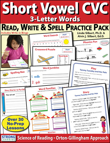 SHORT VOWEL 3-LETTER CVC WORDS Practice Pack – Story, Play, and Writing Activities